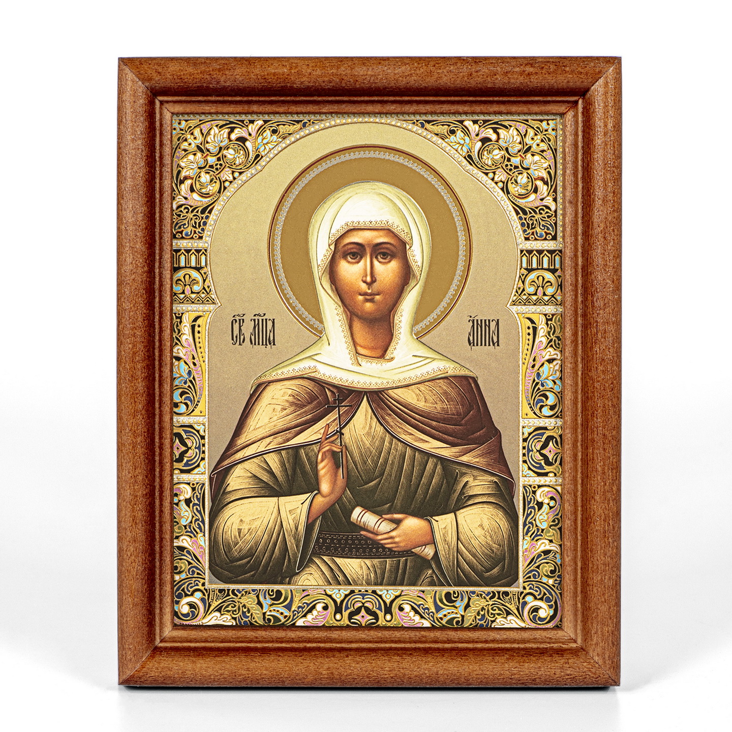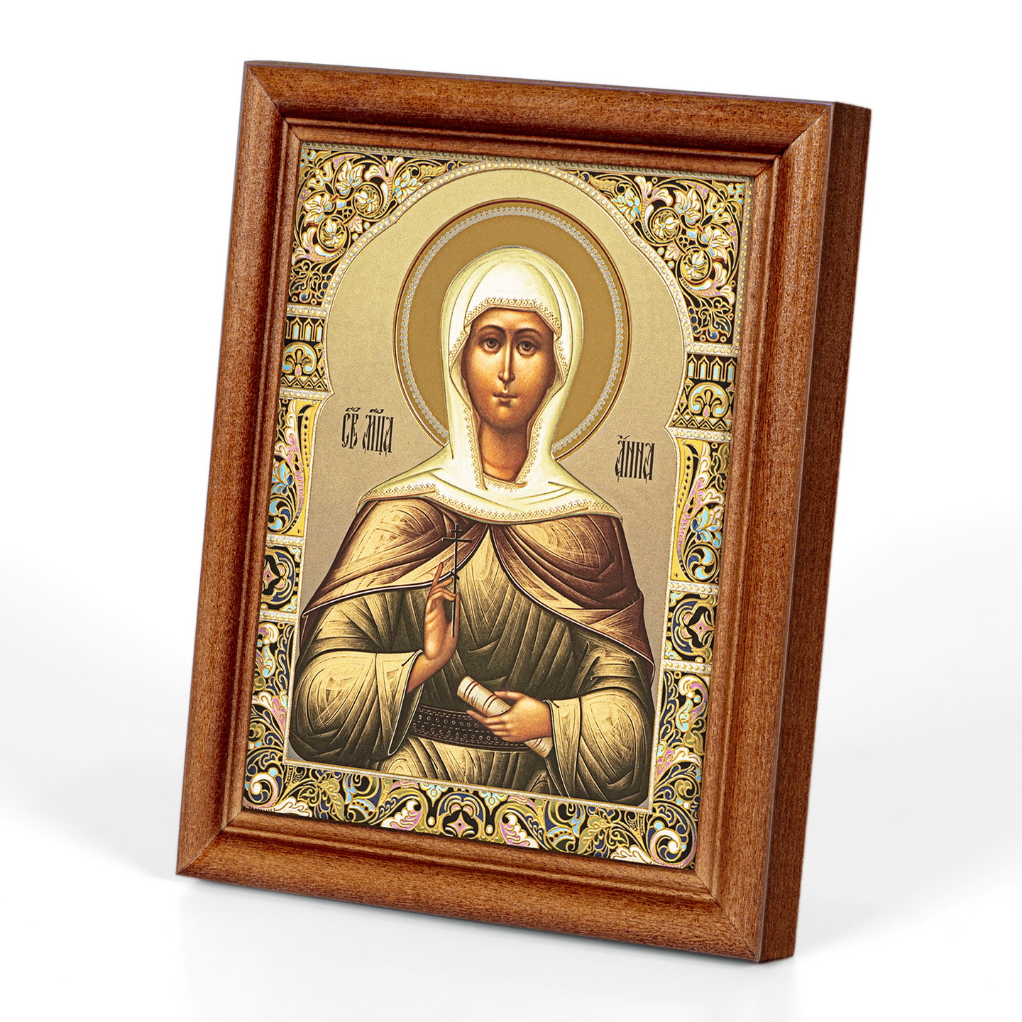 Икона в деревянной рамке №1 11х13 двойное тиснение Анна