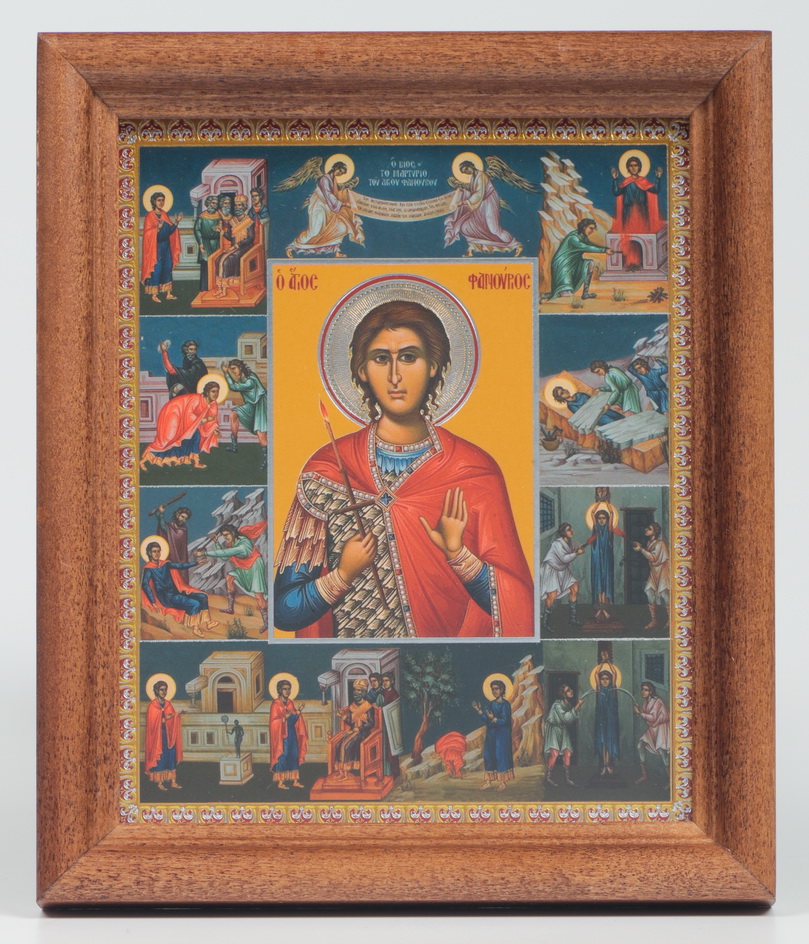 Икона в деревянной рамке №1 11х13 двойное тиснение, аннотация Фанурий