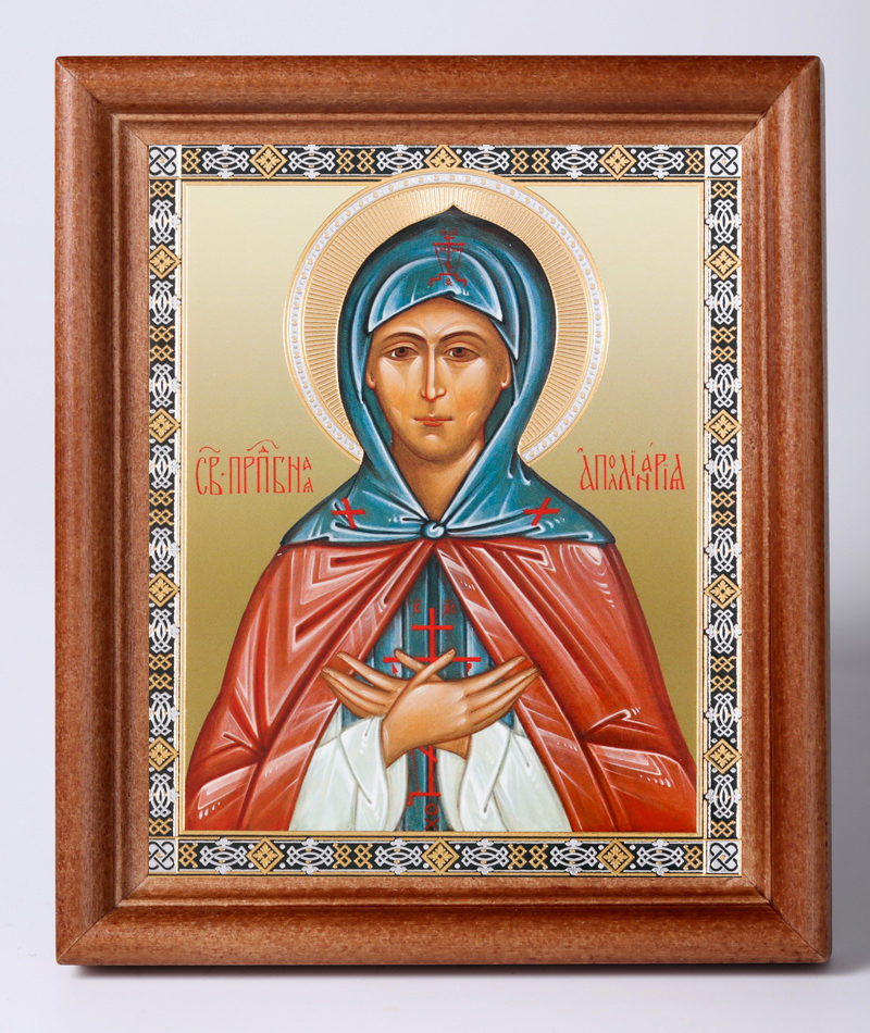 Икона в деревянной рамке №1 11х13 двойное тиснение Аполлинария прп.