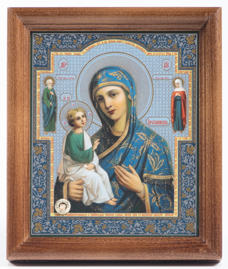 Икона в деревянной рамке №1 11х13 двойное тиснение, БЗГ, аннотация, упаковка Иерусалимская с предстоящими