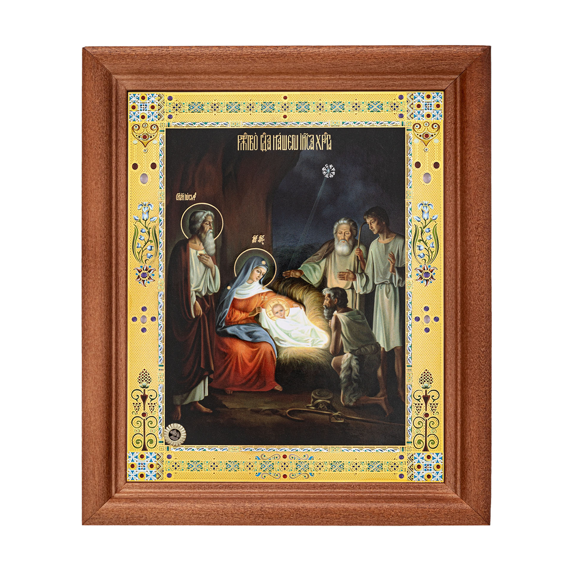 Икона в деревянной рамке №1 11х13 двойное тиснение, БЗГ Рождество Христово 66