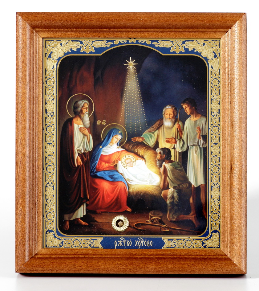 Икона в деревянной рамке №1 11х13 двойное тиснение, БЗГ, упаковка Рождество Христово 21