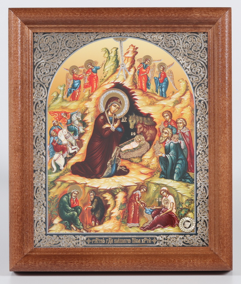 Икона в деревянной рамке №1 11х13 двойное тиснение, БЗГ, упаковка Рождество Христово 40