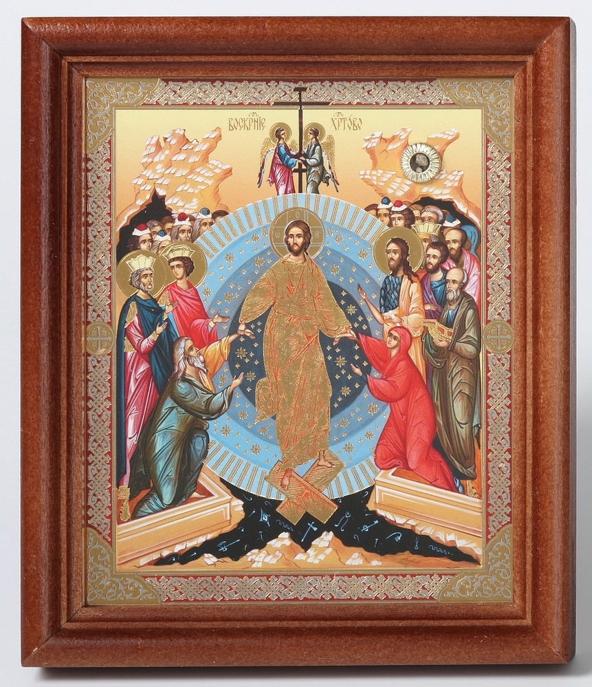 Икона в деревянной рамке №1 11х13 двойное тиснение, БЗГ, упаковка Воскресение Христово 54