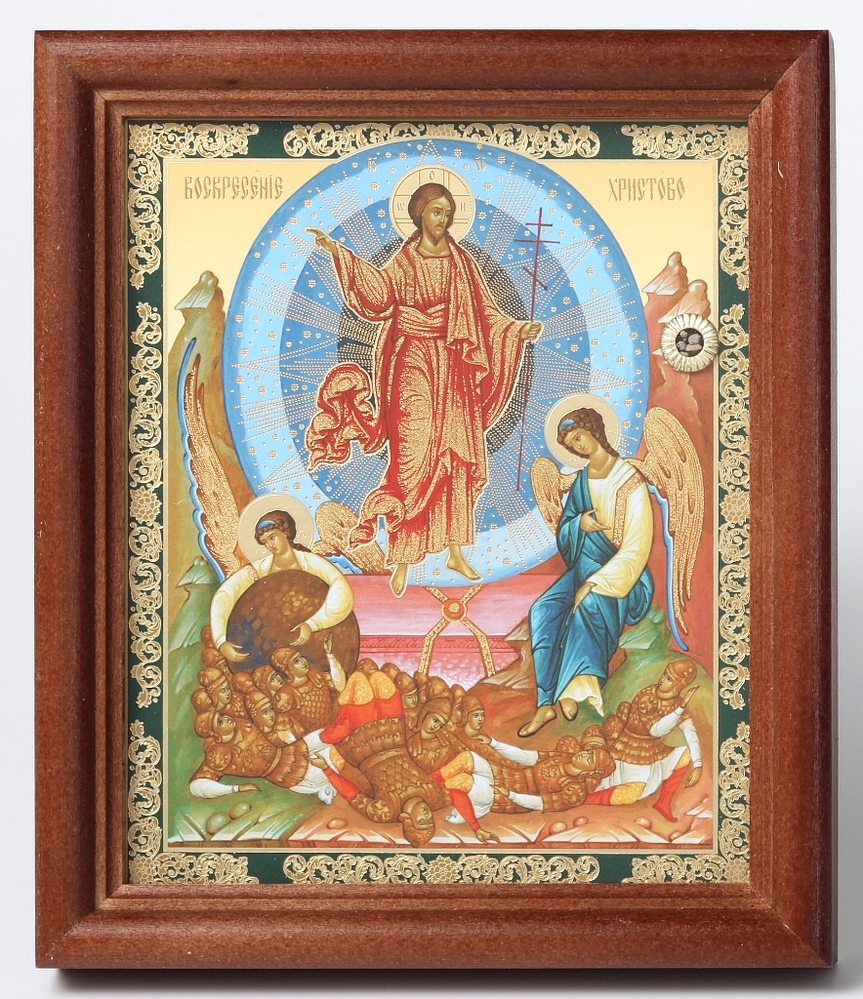 Икона в деревянной рамке №1 11х13 двойное тиснение, БЗГ, упаковка Воскресение Христово 63