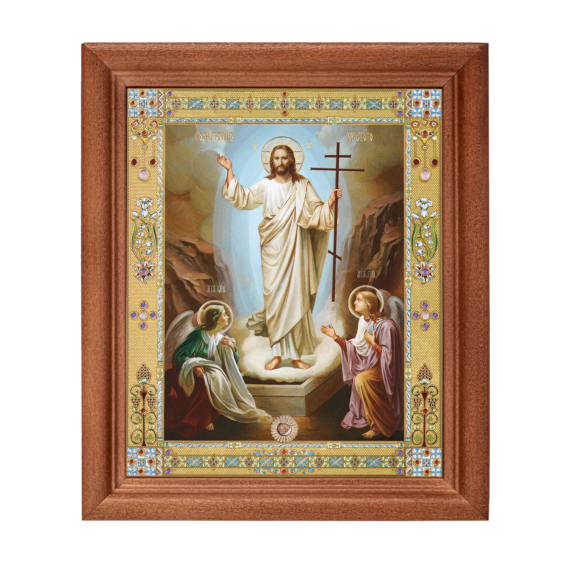 Икона в деревянной рамке №1 11х13 двойное тиснение, БЗГ Воскресение Христово 65