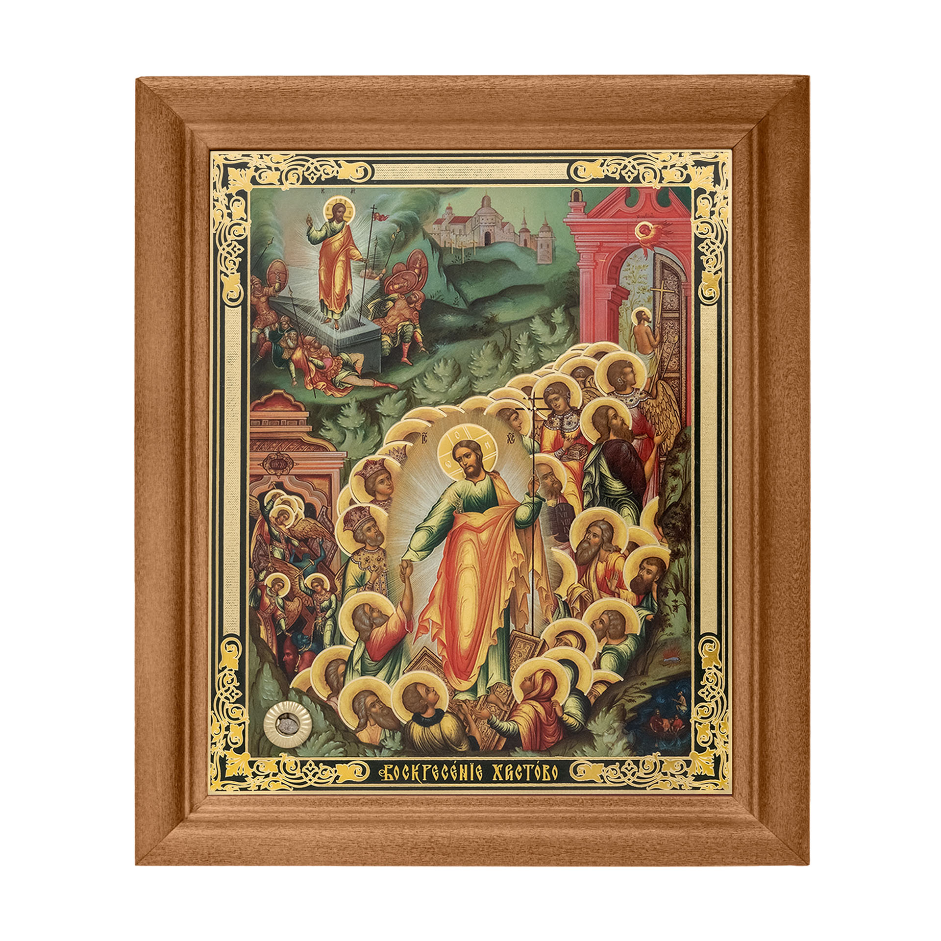 Икона в деревянной рамке №1 11х13 двойное тиснение, БЗГ Воскресение Христово 67