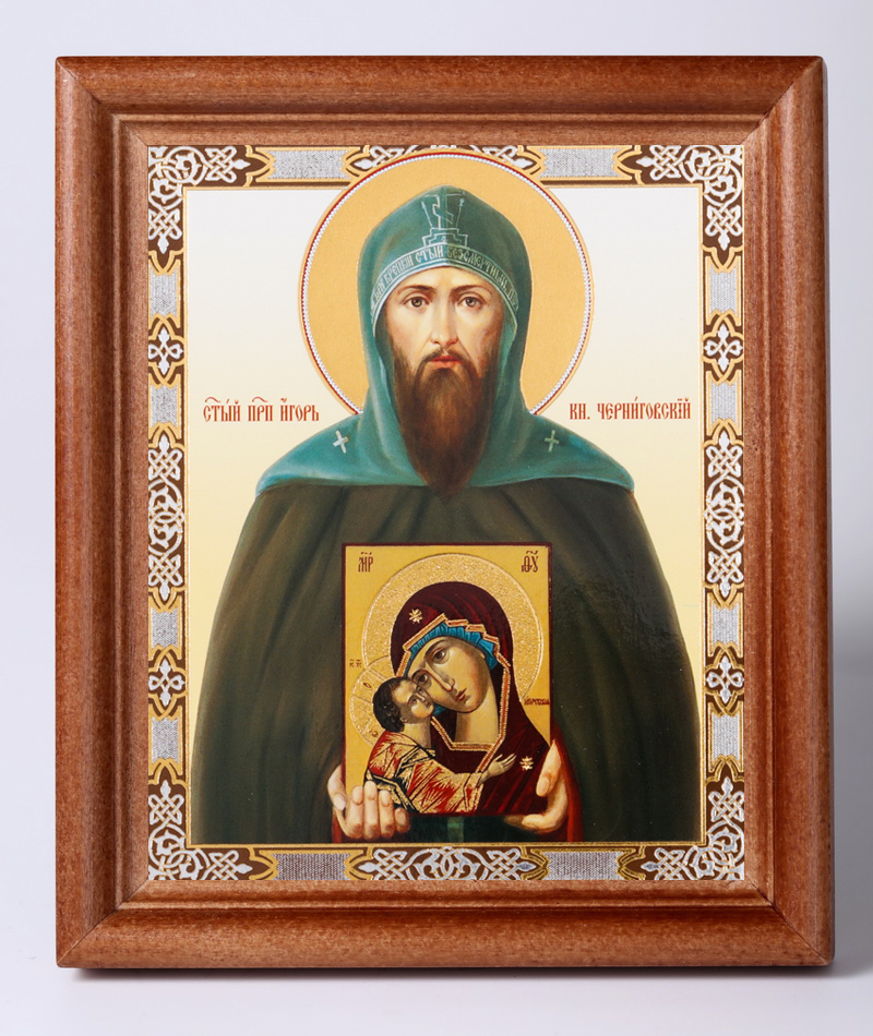Икона в деревянной рамке №1 11х13 двойное тиснение Игорь, князь Черниговский 3