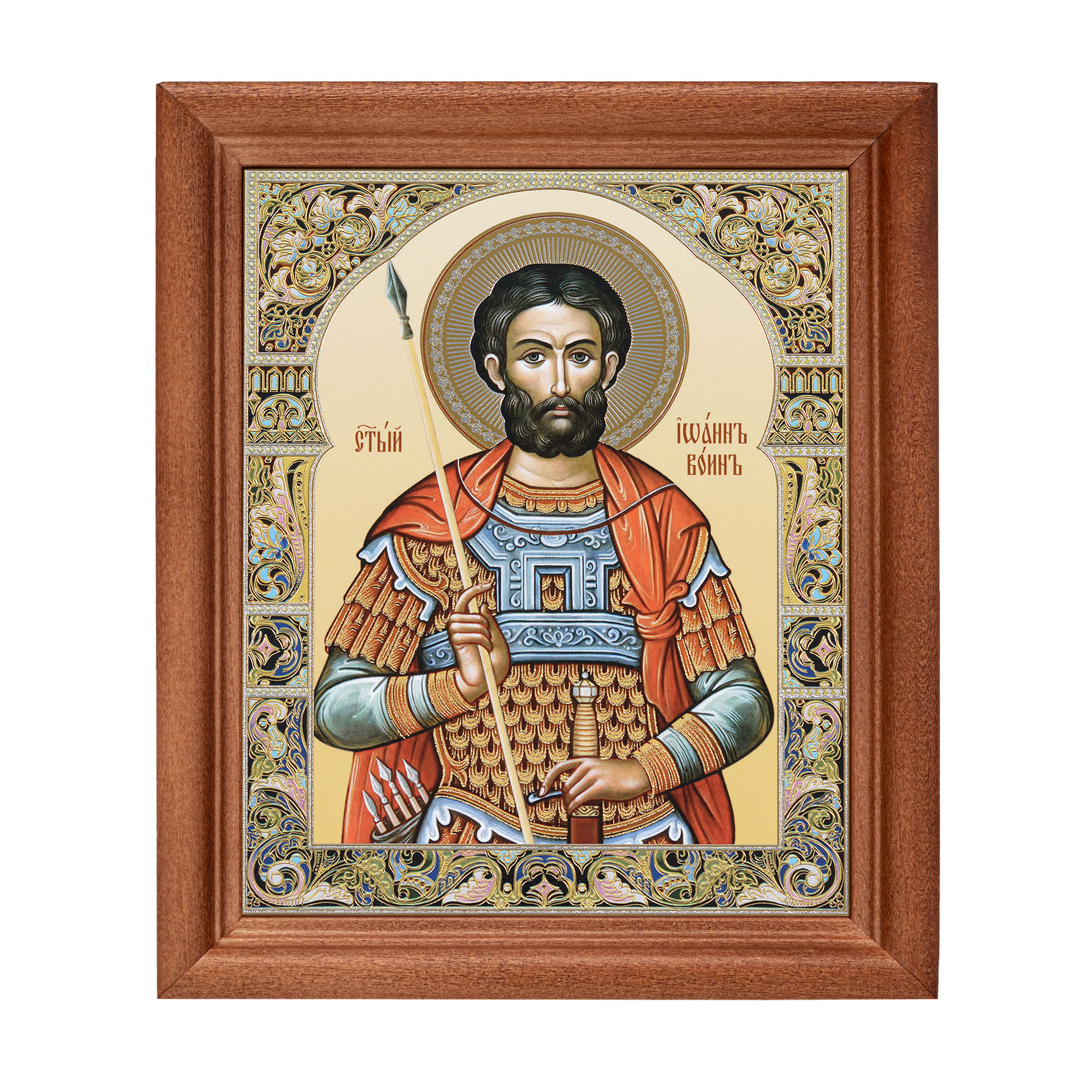 Икона в деревянной рамке №1 11х13 двойное тиснение Иоанн Воин 4