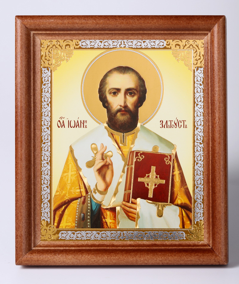 Икона в деревянной рамке №1 11х13 двойное тиснение Иоанн Златоуст 2