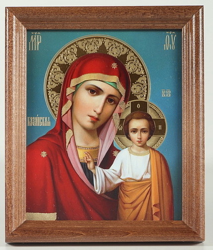 Икона в деревянной рамке №1 11х13 двойное тиснение Казанская БМ 34