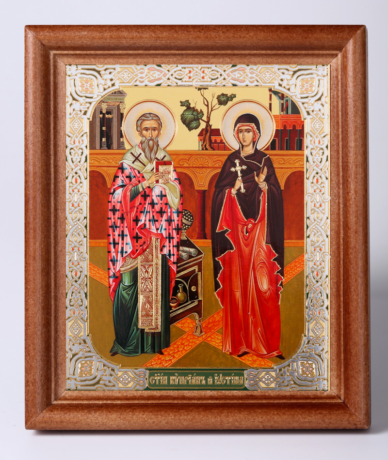 Икона в деревянной рамке №1 11х13 двойное тиснение Киприан и Иустина 4