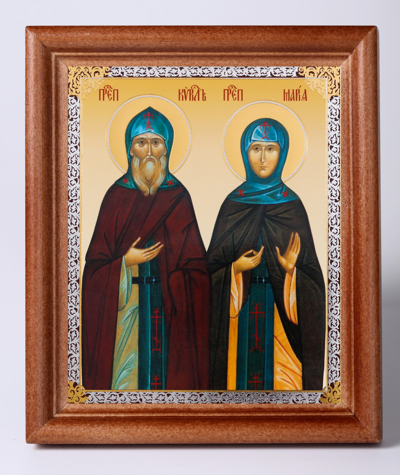 Икона в деревянной рамке №1 11х13 двойное тиснение Кирилл и Мария 2