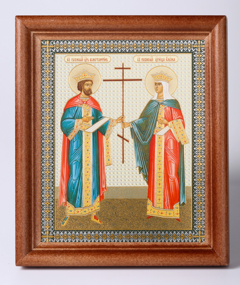 Икона в деревянной рамке №1 11х13 двойное тиснение Константин и Елена
