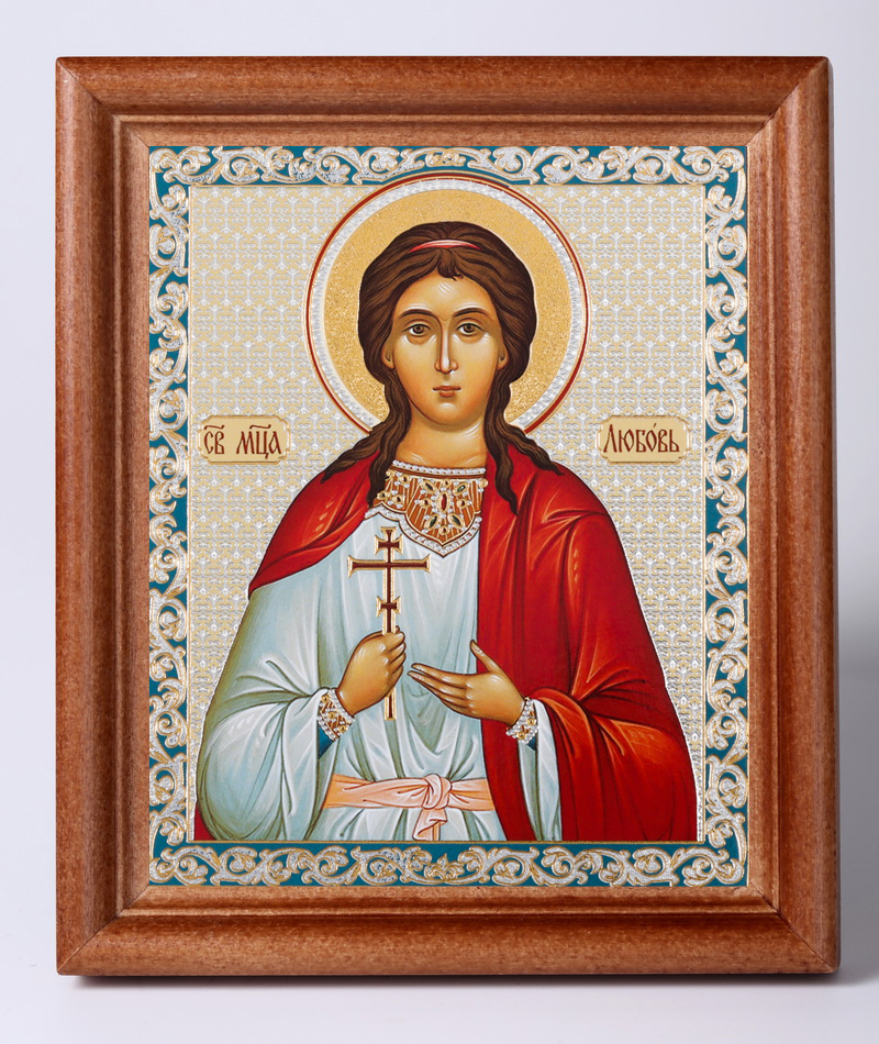 Икона в деревянной рамке №1 11х13 двойное тиснение Любовь Римская, отроковица, мц. (2)