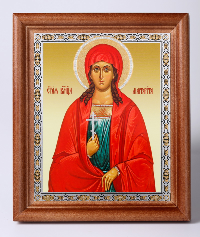 Икона в деревянной рамке №1 11х13 двойное тиснение Маргарита Антиохийская, вмц. (2)