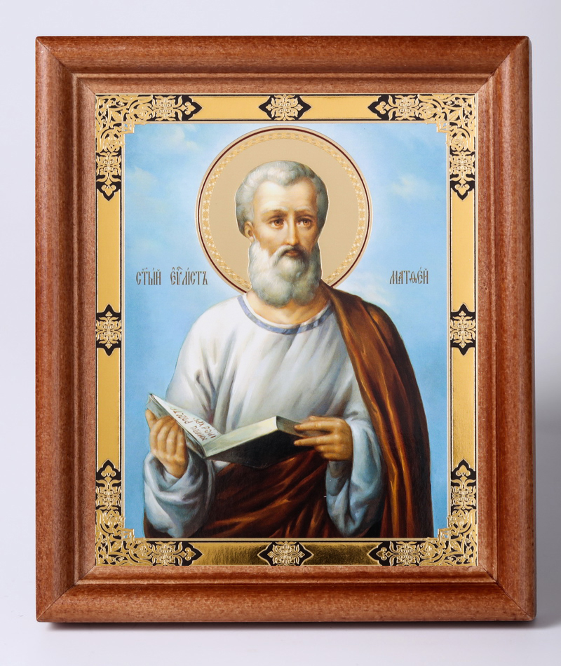 Икона в деревянной рамке №1 11х13 двойное тиснение Матфей, евангелист