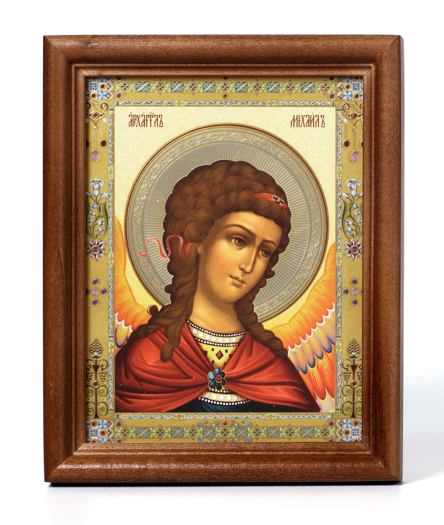 Икона в деревянной рамке №1 11х13 двойное тиснение Михаил Архангел (оплечный)