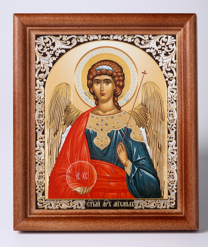 Икона в деревянной рамке №1 11х13 двойное тиснение Михаил Архангел (поясной) 2