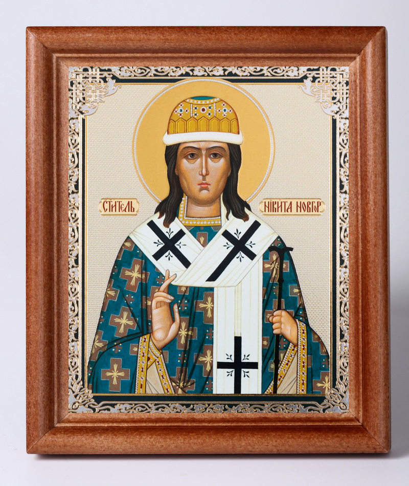 Икона в деревянной рамке №1 11х13 двойное тиснение Никита Новгородский 2