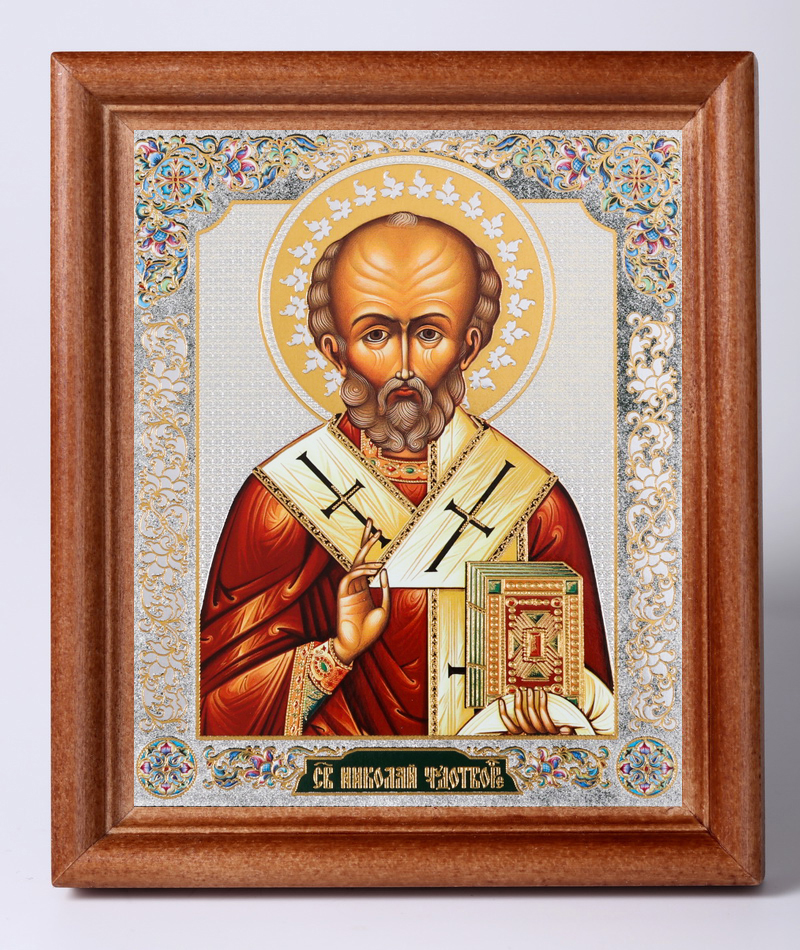 Икона в деревянной рамке №1 11х13 двойное тиснение Николай Чудотворец 10