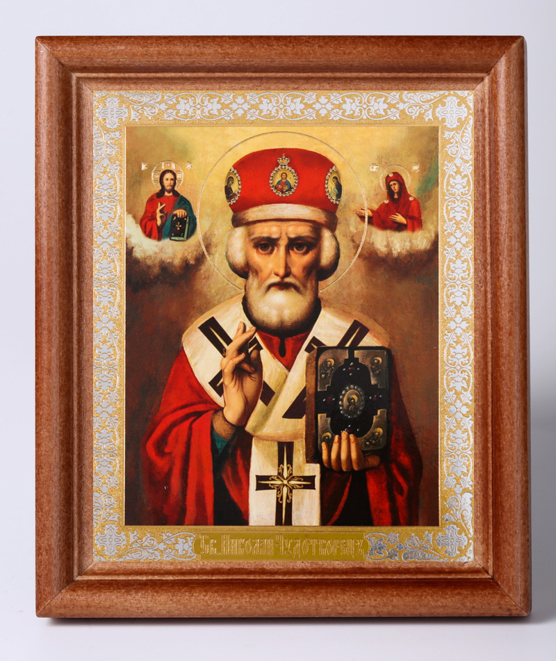 Икона в деревянной рамке №1 11х13 двойное тиснение Николай Чудотворец 16