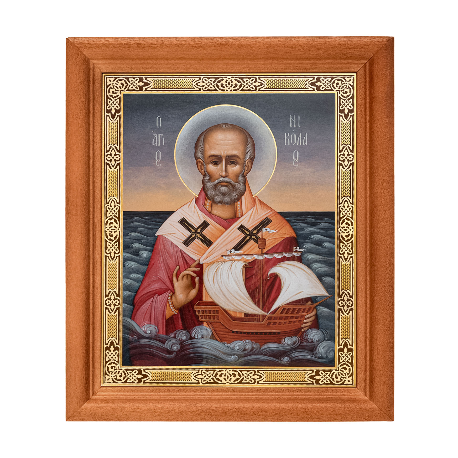 Икона в деревянной рамке №1 11х13 двойное тиснение Николай Чудотворец 19