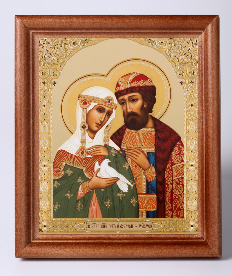Икона в деревянной рамке №1 11х13 двойное тиснение Петр и Феврония 7