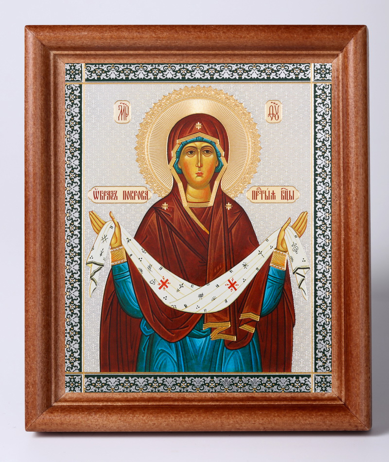 Икона в деревянной рамке №1 11х13 двойное тиснение Покров (поясной) 2