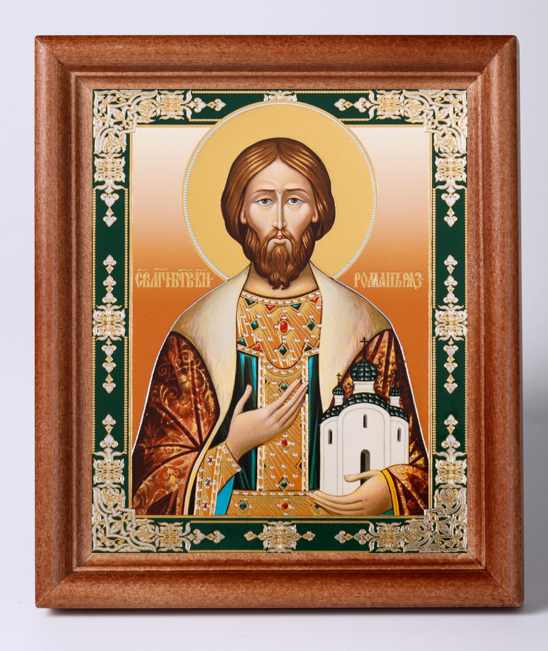 Икона в деревянной рамке №1 11х13 двойное тиснение Роман Рязанский 2