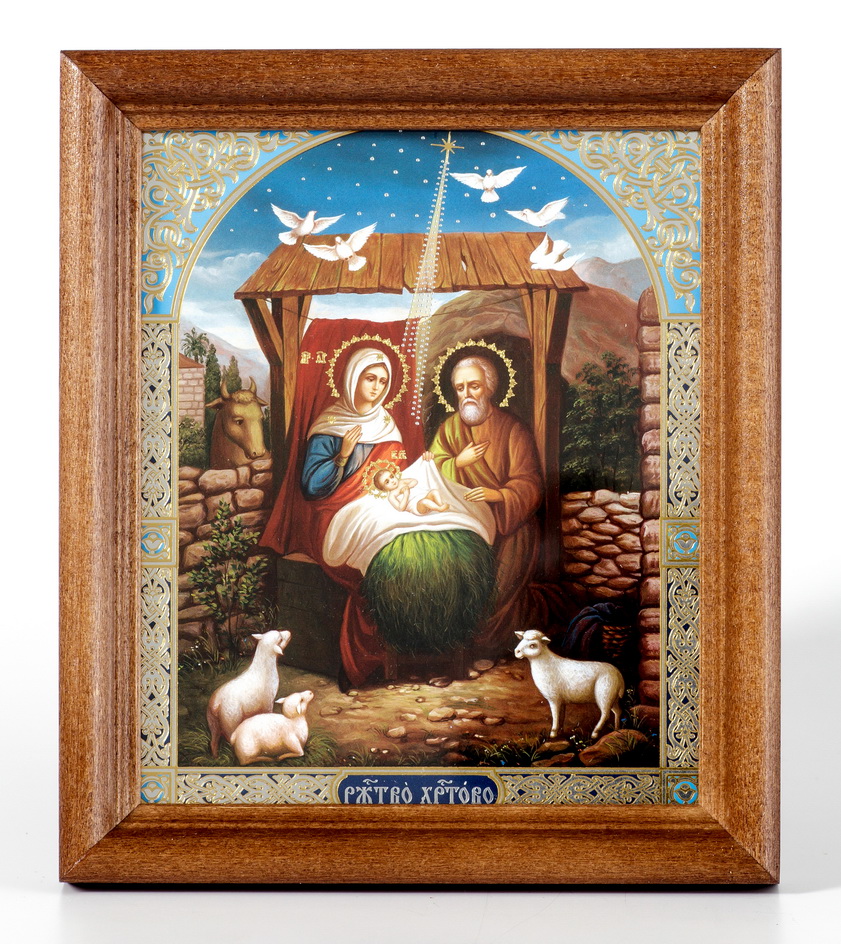 Икона в деревянной рамке №1 11х13 двойное тиснение Рождество Христово 35