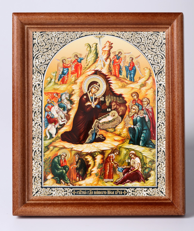 Икона в деревянной рамке №1 11х13 двойное тиснение Рождество Христово 40