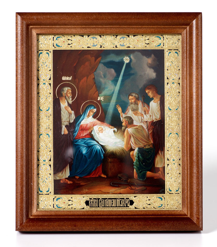 Икона в деревянной рамке №1 11х13 двойное тиснение Рождество Христово 64