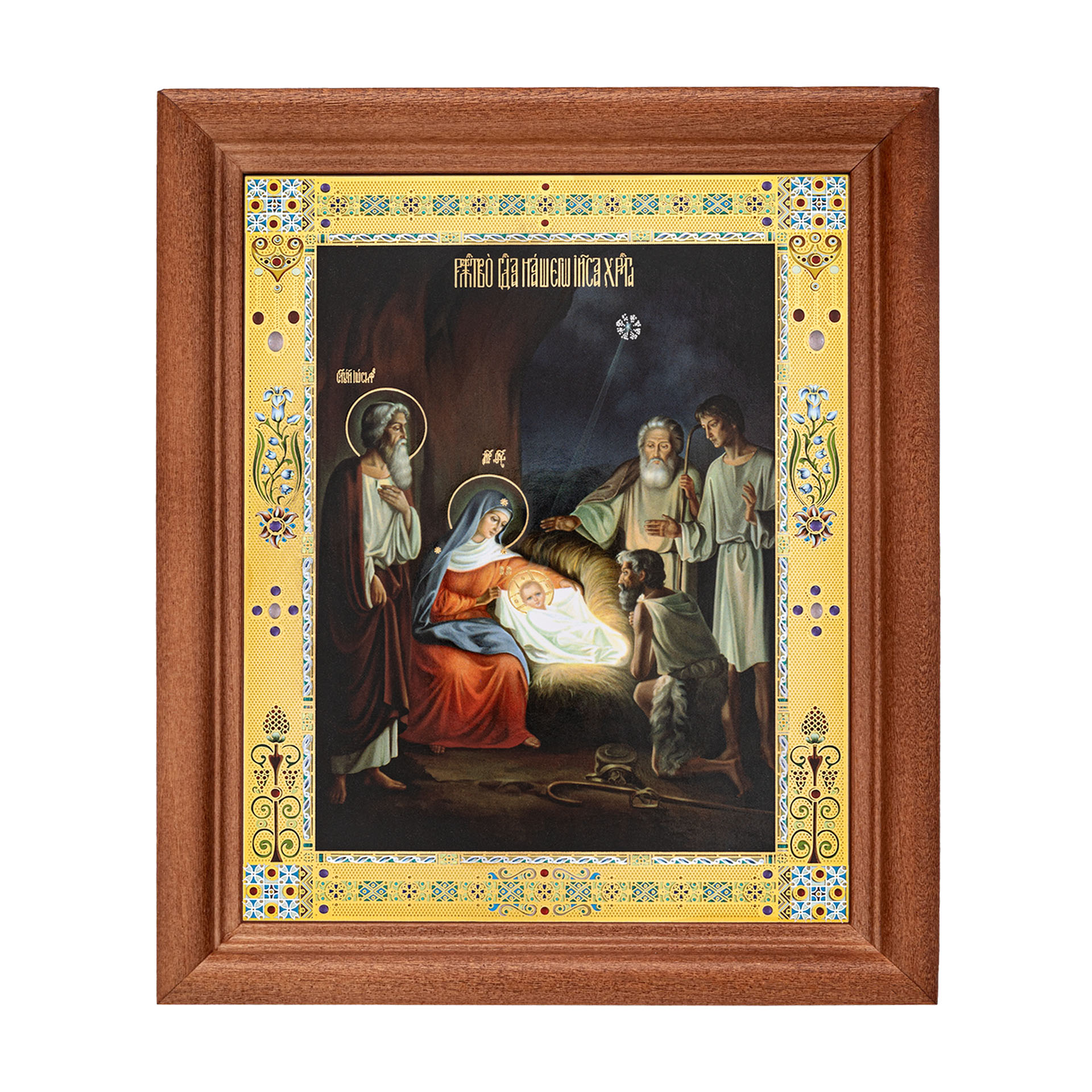 Икона в деревянной рамке №1 11х13 двойное тиснение Рождество Христово 66