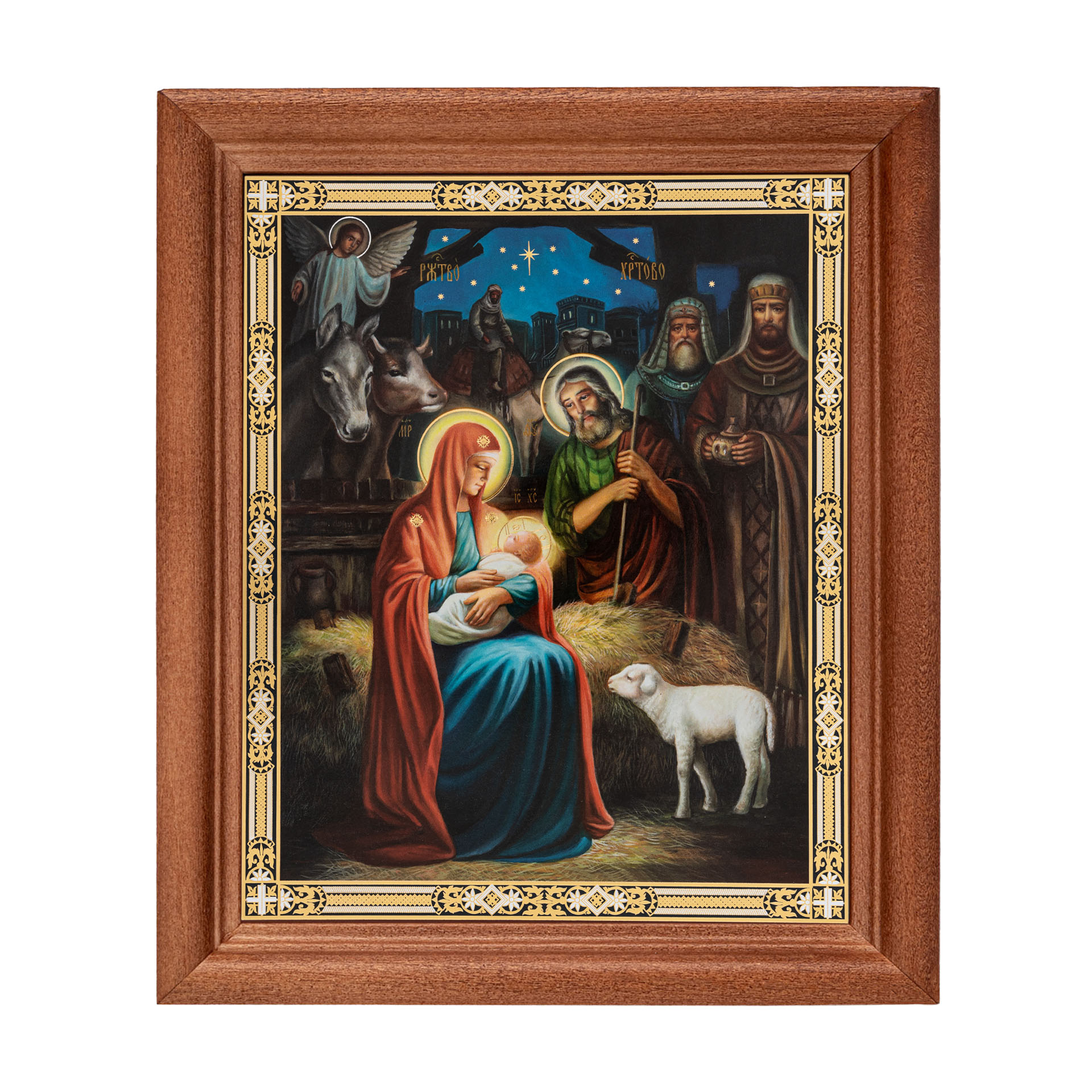 Икона в деревянной рамке №1 11х13 двойное тиснение Рождество Христово 67