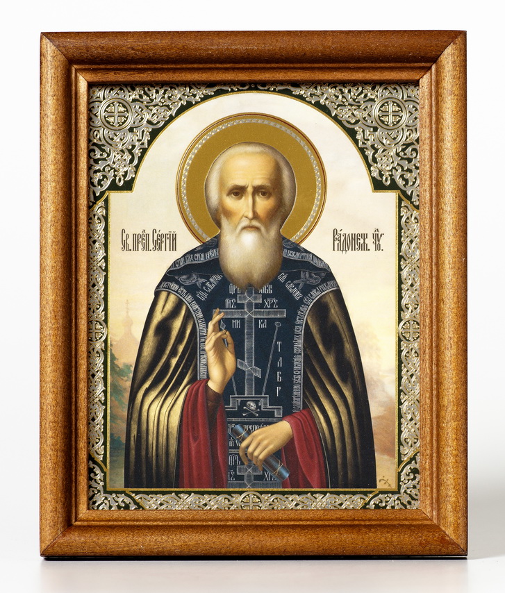 Икона в деревянной рамке №1 11х13 двойное тиснение Сергий Радонежский 22