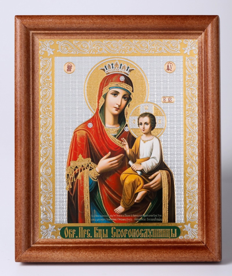 Икона в деревянной рамке №1 11х13 двойное тиснение Скоропослушница БМ 2
