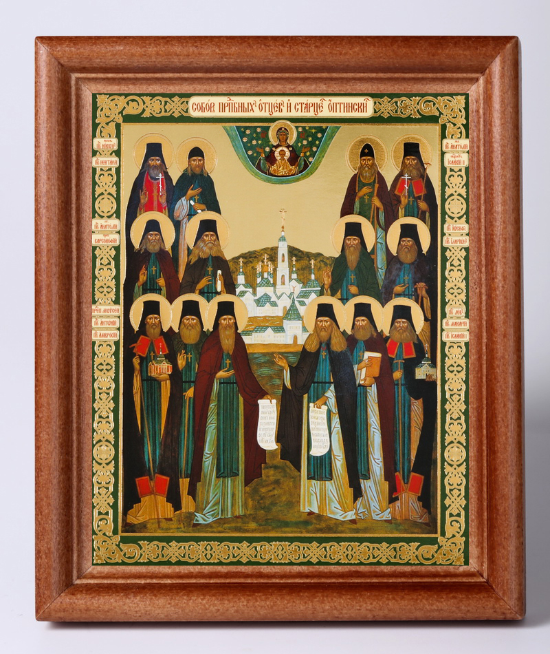 Икона в деревянной рамке №1 11х13 двойное тиснение Собор Оптинских старцев ОП