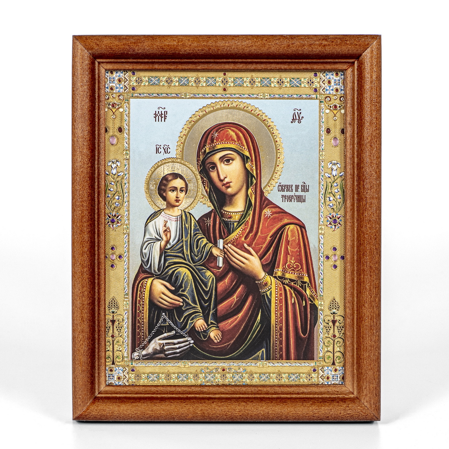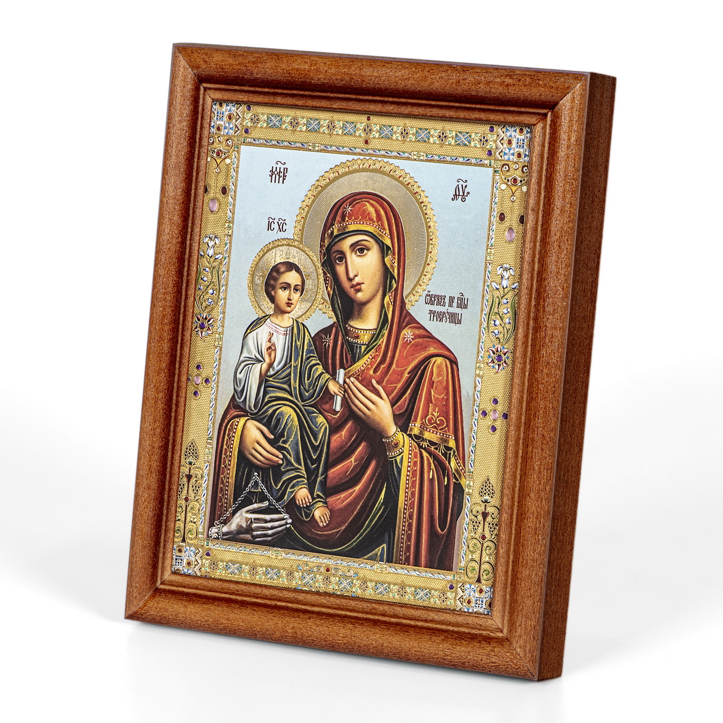Икона в деревянной рамке №1 11х13 двойное тиснение Троеручица 4