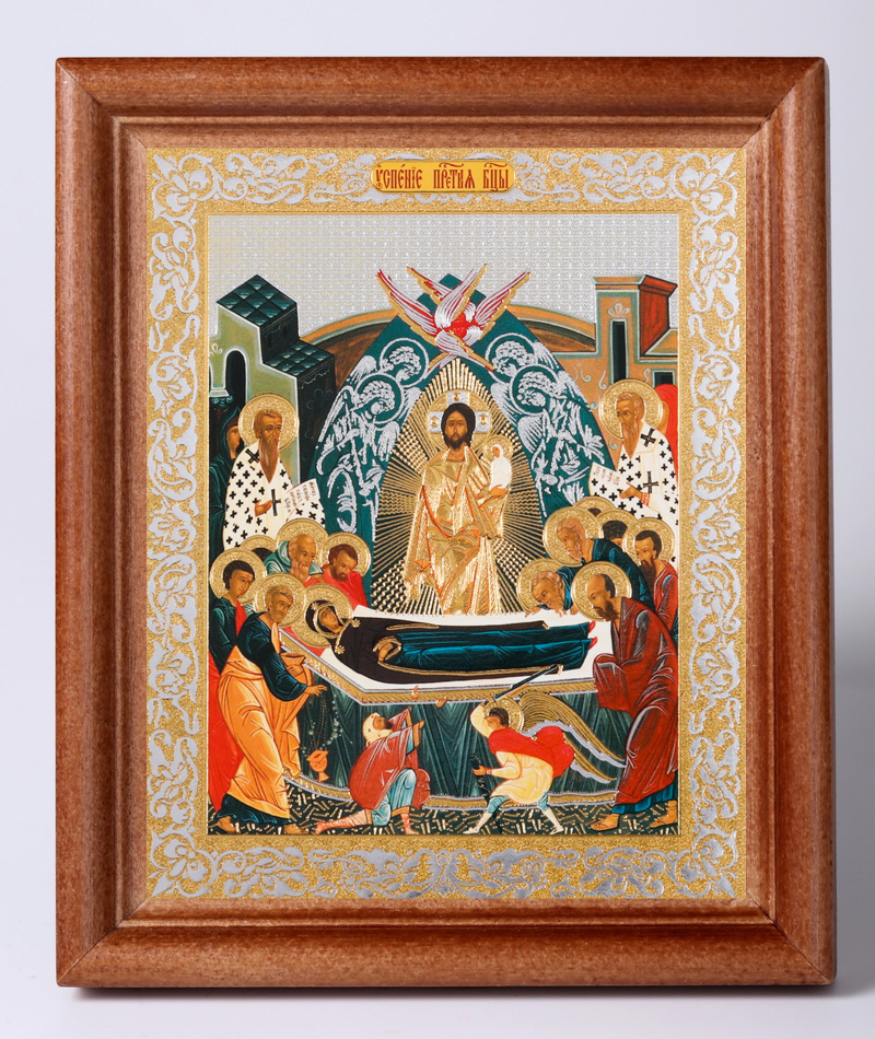 Икона в деревянной рамке №1 11х13 двойное тиснение Успение Богородицы