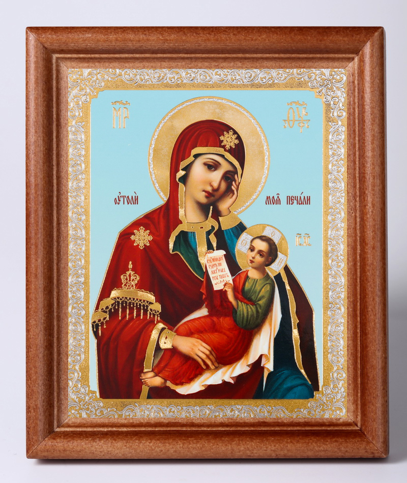 Икона в деревянной рамке №1 11х13 двойное тиснение Утоли моя печали БМ