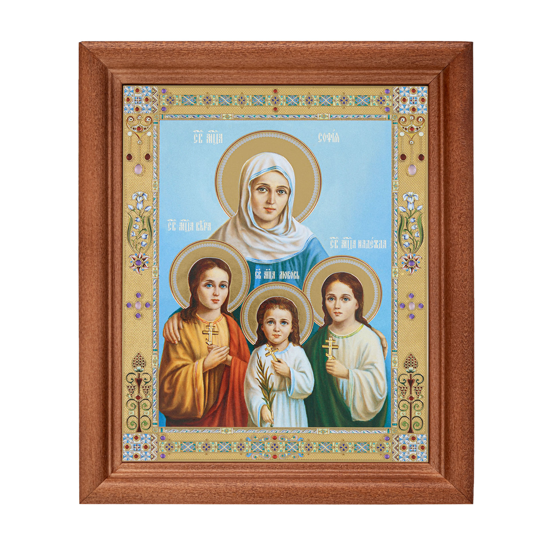 Икона в деревянной рамке №1 11х13 двойное тиснение Вера Надежда Любовь 8