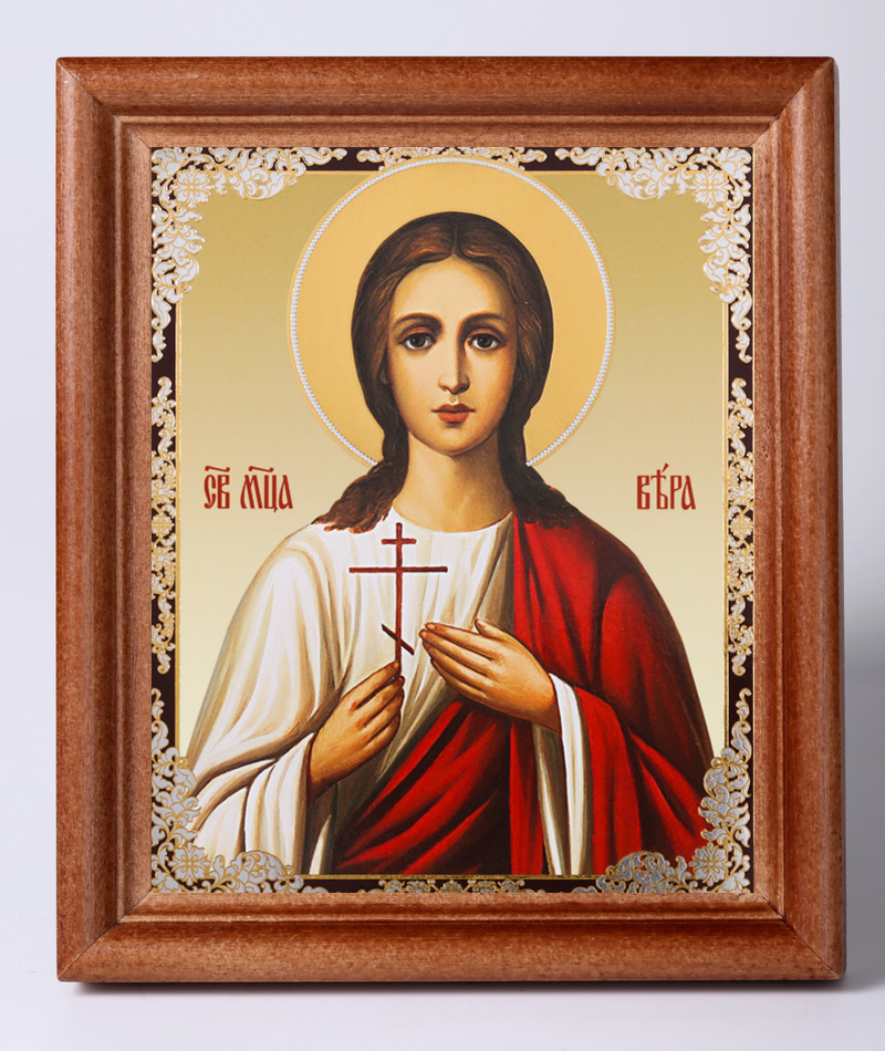 Икона в деревянной рамке №1 11х13 двойное тиснение Вера Римская, отроковица, мц. (3)
