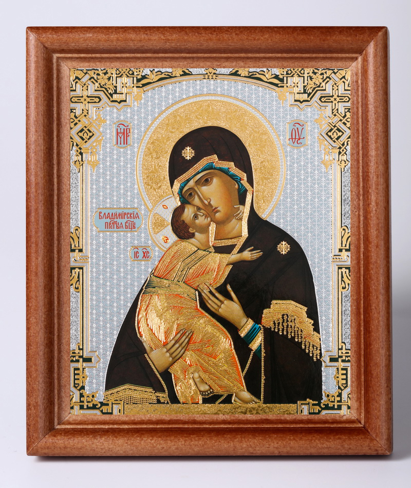 Икона в деревянной рамке №1 11х13 двойное тиснение Владимирская БМ 4