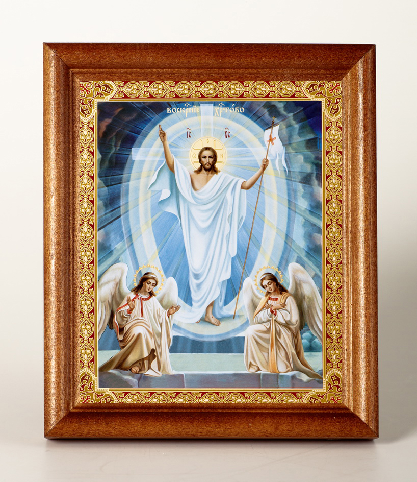 Икона в деревянной рамке №1 11х13 двойное тиснение Воскресение Христово 25