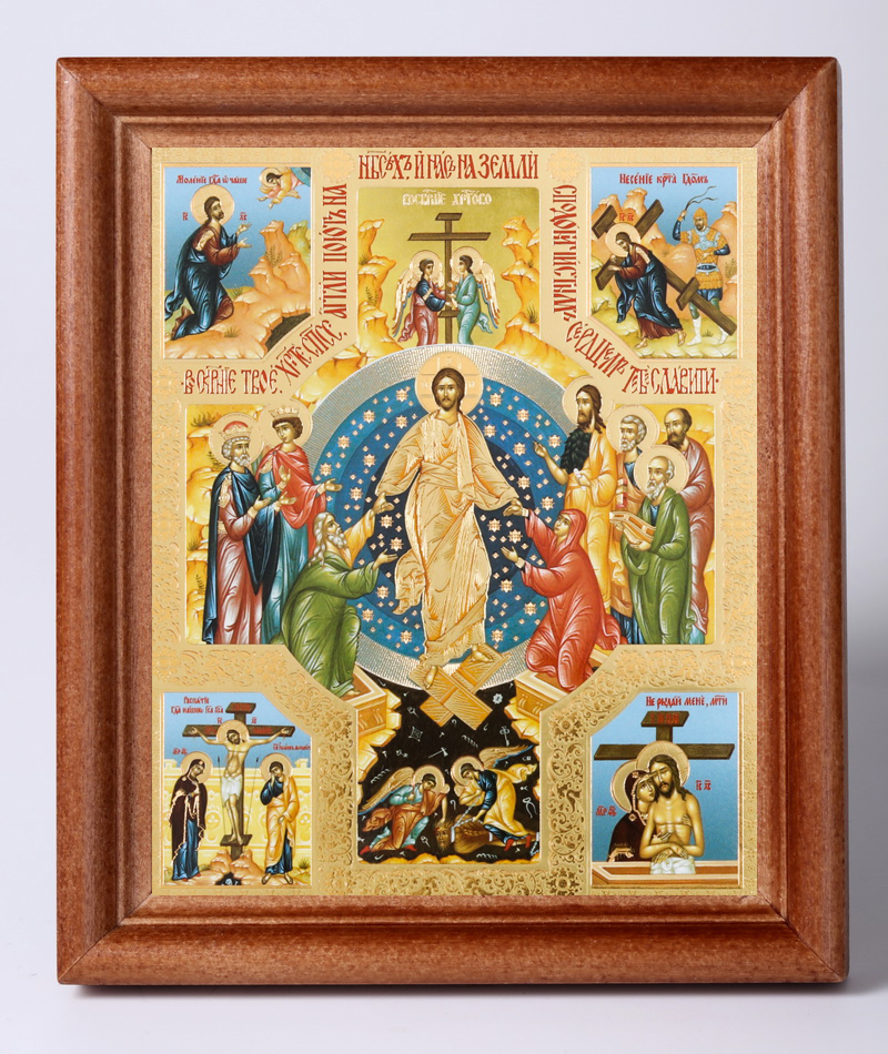 Икона в деревянной рамке №1 11х13 двойное тиснение Воскресение Христово 35