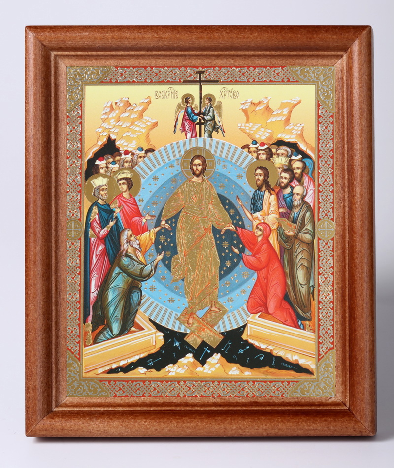 Икона в деревянной рамке №1 11х13 двойное тиснение Воскресение Христово 54