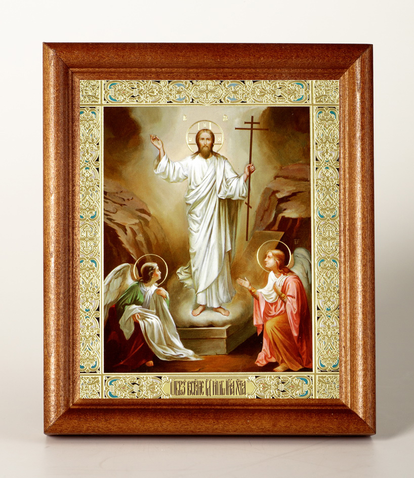 Икона в деревянной рамке №1 11х13 двойное тиснение Воскресение Христово 64