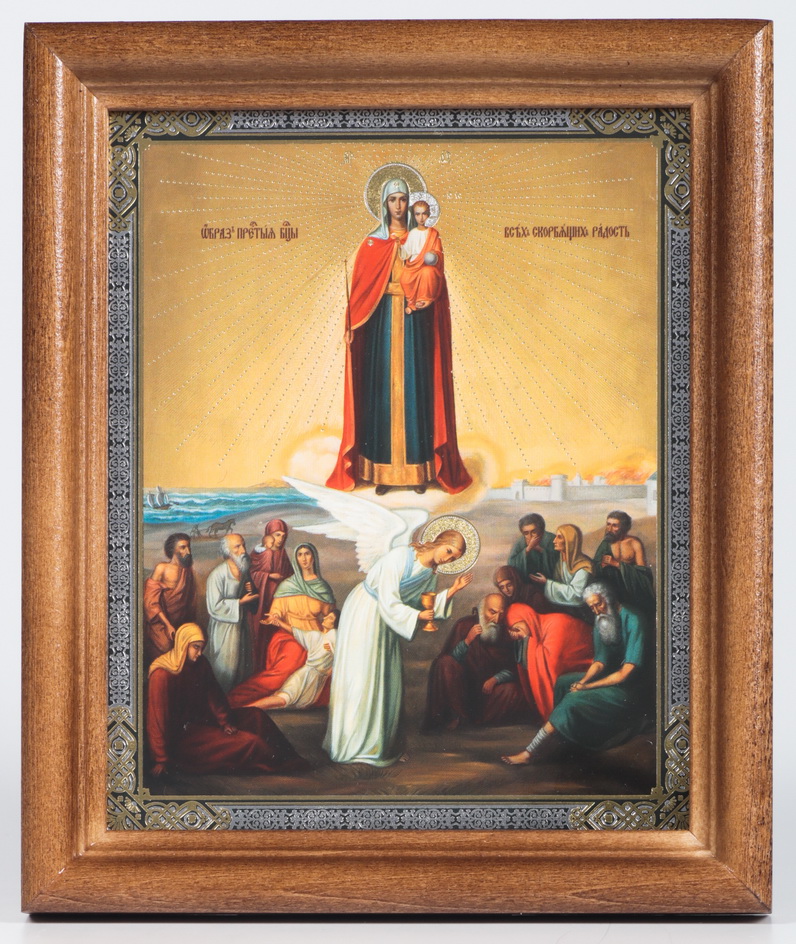 Икона в деревянной рамке №1 11х13 двойное тиснение Всех скорбящих Радость