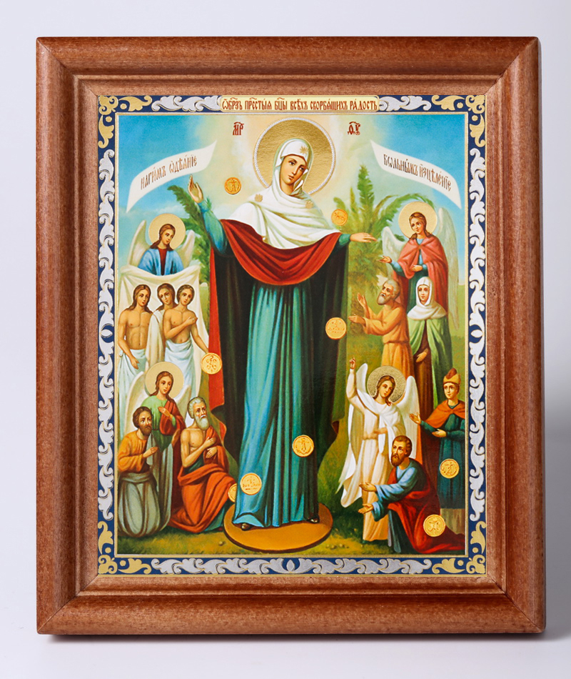 Икона в деревянной рамке №1 11х13 двойное тиснение Всех скорбящих Радость с грошиками №3